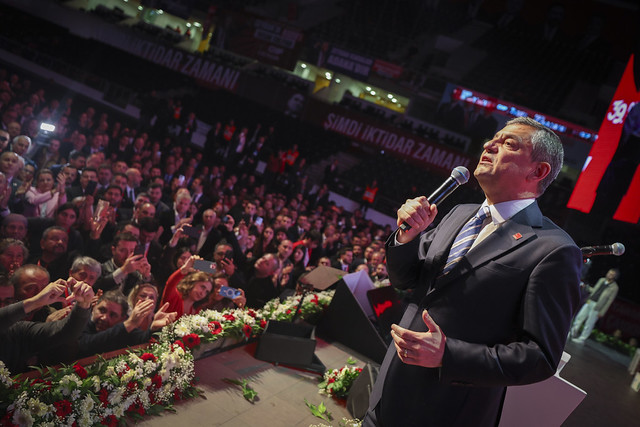 Özel, çarpıcı konuşmasının ardından alkışlar ve sloganlar eşliğinde kürsüden indi.