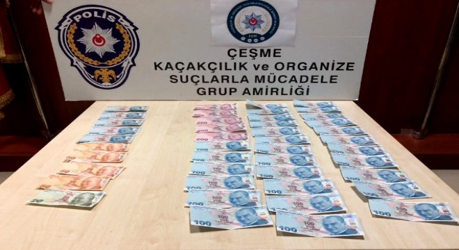 Çeşme'de piyasaya sahte para sürmeye çalışan 2 kişi Kaçakçılık ve Organize Suçlarla Mücadele (KOM) Çeşme Grup Amirliği ekiplerince yakalandı. 2 şahıs, mahkemece, adli kontrol şartı ile serbest bırakıldı.