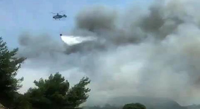 Orman Bölge Müdürlüğüne bağlı helikopterler havadan müdahale ederken, yangına yakın oturan vatandaşlar evlerini terk ediyor.