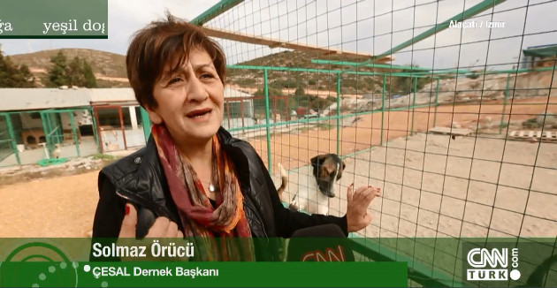 Yeşil Doğa programı yapımcısı Güven İslamoğlu'na, ÇESAL'a ait barınakta 70 sokak köpeğinin daha sahiplenmek için beklediğini açıklayan ÇESAL Başkanı Solmaz Örücü, "Bu barınaktaki köpeklerin çoğu, sokakta yaşayamayacak durumda olan, korunmaya muhtaç hayvanlar. Aslında amacımız sokak hayvanları için rehabilitasyon merkezi açmaktı. O amaçla yola çıkmıştık. Özürlü hayvanlarımız da çok. Kör olan, ayağı sakat olan çok sayıda hayvanımız var. Onlar önce klinikte tedavi görüyorlar. Daha sonra dar alanda bakılarak belirli bir iyileşme sürecinden geçiyorlar. Bu bakım sırasında ona alışınca tekrar sokağa bırakamıyoruz. Zaman içinde sadece özürlü değil, sokakta yaşayamayacak durumda olan hayvanları da barınağımıza almaya başladık. Çeşme'nin her yerinde köpeklerin yardımına biz koşuyoruz. 'Trafik kazası oldu' diyorlar. Köpeğin yardımına biz gidiyoruz. Barınağımızın aylık masrafı 20 bin lira. Tüm para gönüllülerden toplanıyor. Sokaklarda korunmaya muhtaç o kadar çok hayvan var ki, biz de çaresiz kalıyoruz. Sahipleri tarafından sokağa terk edilen çok sayıda köpek var. Onlar, sokağa asla uyum sağlayamıyorlar. Hazır yemeğe alışkın oldukları için sokaklarda aç kalıyorlar. Bu tür bakıma muhtaç hayvanlar için sahiplendirilinceye kadar barınaklara ihtiyaç var. Ama sağlıklı hayvanların, insanlar rahatsız oluyor diye toplanıp, barınaklara tıkılmasını asla istemiyoruz. Onların yaşam hakkına saygı gösterilmesini ve onlarla birlikte yaşamaya alışılmasını istiyoruz. Hayvanları sevmeyen insanlardan da bir şey talep etmiyoruz. 'Siz sadece gölge etmeyin' diyoruz" şeklinde konuştu.