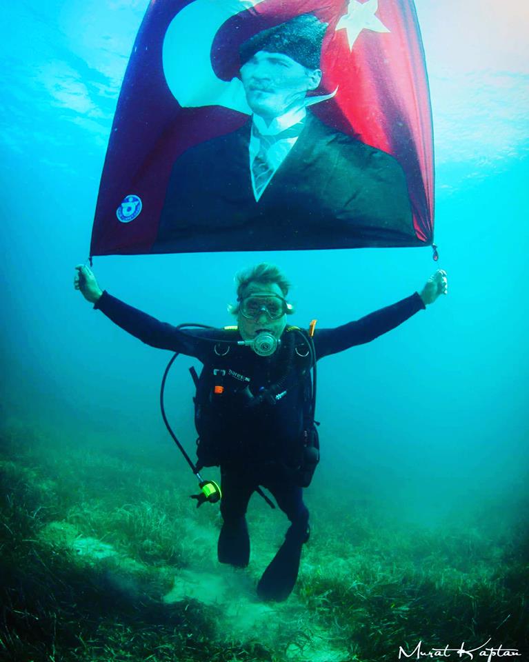 Çeşmeli balıkadamların "Derin Doğa Dalış Merkezi" adlı bir kulübü olduğunu belirten Karar, "Türkiye çapında, birçok ödül almış sualtı fotoğrafçısı arkadaşımız Murat Kaptan da Çeşme'deydi. Çektiği sualtı fotoğrafları ile hem Türkiye'de hem de yurtdışında birçok ödül almış bir sanatçı olan Murat Kaptan'ın kamerası eşliğinde dalış yaptık. Sualtında büyük bir Atatürk'lü Bayrak açtık. Ayrıca Ege Denizi'nin derinliklerindeki Atatürk büstünün önünde diz çökerek saygı duruşunda bulunduk. Atamıza asker selamı verdik. Çeşmeli balıkadamlar olarak Atamıza olan saygımızı, Cumhuriyet Bayramı'nda özel bir dalış yaparak böyle göstermiş olduk. Çeşme, deniziyle ünlü. Ege deniziyle ünlü. Biz balıkadamlara da böyle bir Cumhuriyet kutlaması yakışırdı. Cumhuriyet Bayramı coşkusu her yerde büyük bir coşkuyla kutlanıyor. Bizler de Türk balıkadamları olarak, deniz dibine yerleştirdiğimiz Yüce Atatürk'ün büstünün önünde diz çökerek ve O'na asker selamı vererek, Ege'nin mavi, barış dolu sularında saygımızı gösterdik. Çeşme'de böyle bir organizasyona imza attığımız için çok mutluyuz ve gururluyuz" diye konuştu.