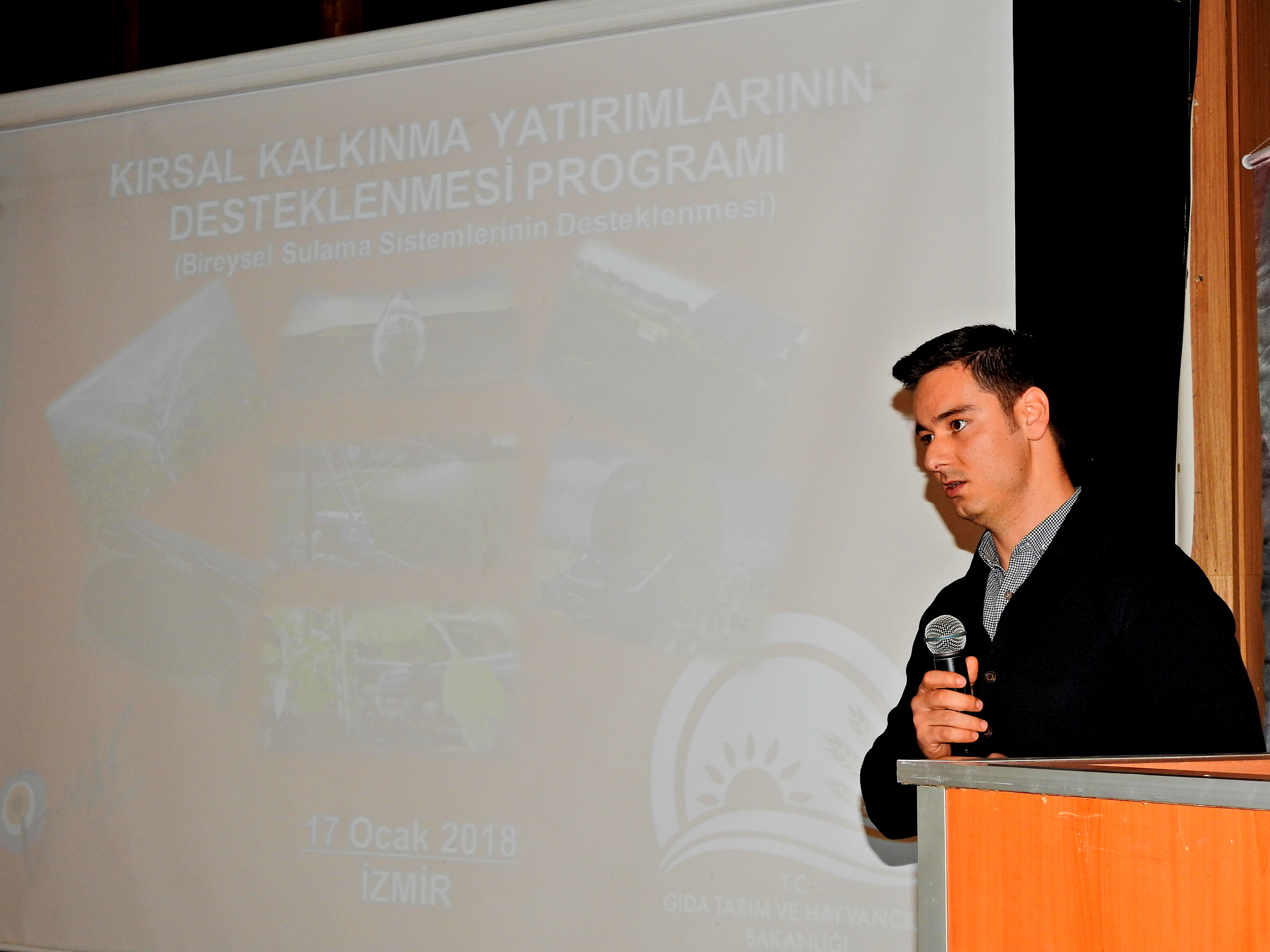 Gıda, Tarım ve Hayvancılık İzmir İl Müdürlüğü Kırsal Kalkınma ve Örgütlenme Şubesi Ziraat Mühendisi Bekir Türk, Kırsal Kalkınma Destekleri Kapsamında Tarıma Dayalı Yatırımların Desteklenmesi kapsamında, sulama sistemine yüzde 50 hibe desteği ile ilgili yayınlanan tebliğ hakkında aydınlatıcı bir sunum yapmasının ardından, Ziraat Mühendisi Nalan Uygun Ergin, üreticilerin sorularını yanıtladı.
