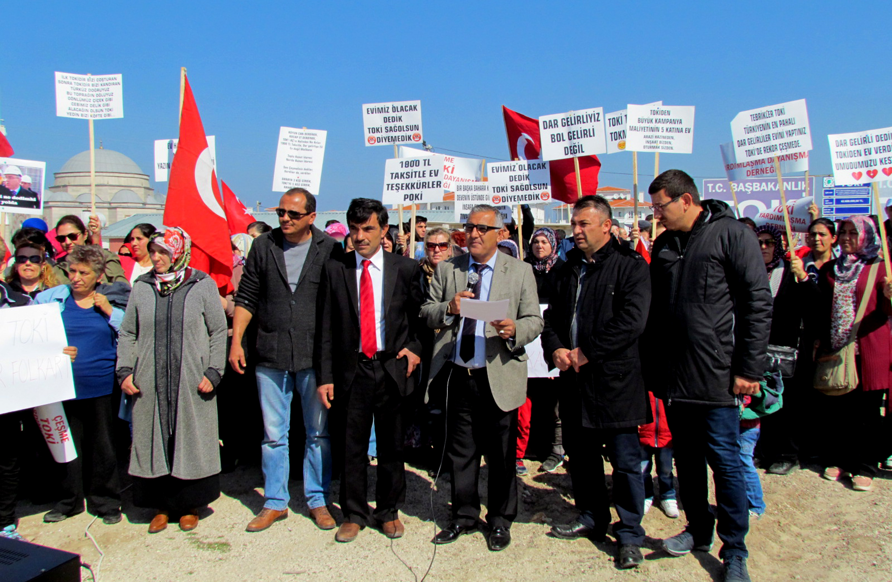 Hak sahipleri adına hazırlanan basın bildirisini okuyan Yakup Yılmaz, Cumhurbaşkanı Recep Tayyip Erdoğan ve Başbakan Binali Yıldırım'a seslendiklerini belirterek, "TOKİ'ye başvurduğumuzda, başvuru sözleşmelerinde belirtilen fiyatla, teslim sözleşmesi arasındaki fiyat, fahiş bir şekilde artmıştır. Fiyat artışına gerekçe olarak sunulan mazeretler, bizleri tatmin etmemiştir. Bizler mağduriyetimizi yetkili her makama anlattık. Ancak bizi dinleyenler, ya ciddiye almadı ya da derdimize çare bulamadılar. Bu nedenle derdimizi sizlere anlatmaktan başka çare kalmadı" dedi.