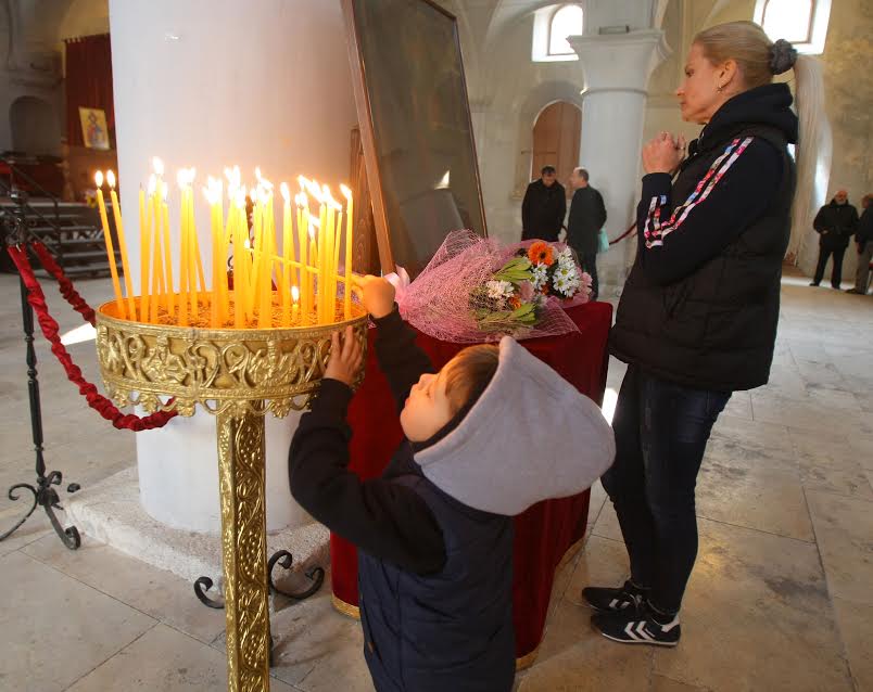 Çeşme çarşısında bulunan, kültürel amaçlarla kullanılan Aya Haralambos Kilisesi'nde, geçtiğimiz yıl 94 yıl aradan sonra ilk kez, Ortodoks Patriği Bartholomeos'un yönettiği bir ayin düzenlenmişti. Bu yıl yapılan ayini ise, Yarımada'dan sorumlu Eritre Episkoposu Kyrillos yönetti.