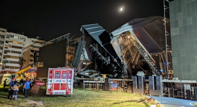 İzmir Büyükşehir Belediyesi'nin Tarkan konseri için kurdurduğu dev sahne yıkıldı. Yıkılan dev sahnenin altında çalışanların kaldığı iddia edilirken bölgeye çok sayıda ambulans sevk edildi.