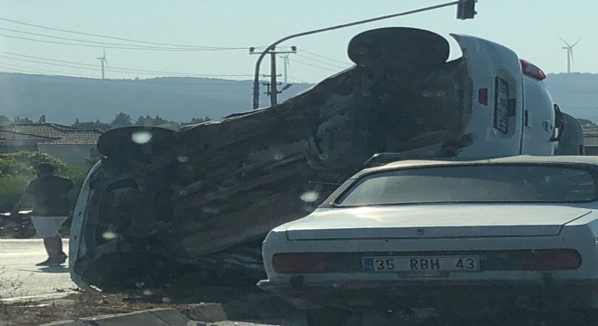 Üzücü trafik kazasında 35 GE 2744 plakalı araç takla atarak bir başka aracın üstüne düştü. Üç aracın karıştığı kaza, yaklaşık 1 saat önce Tekzen kavşağında meydana geldi.