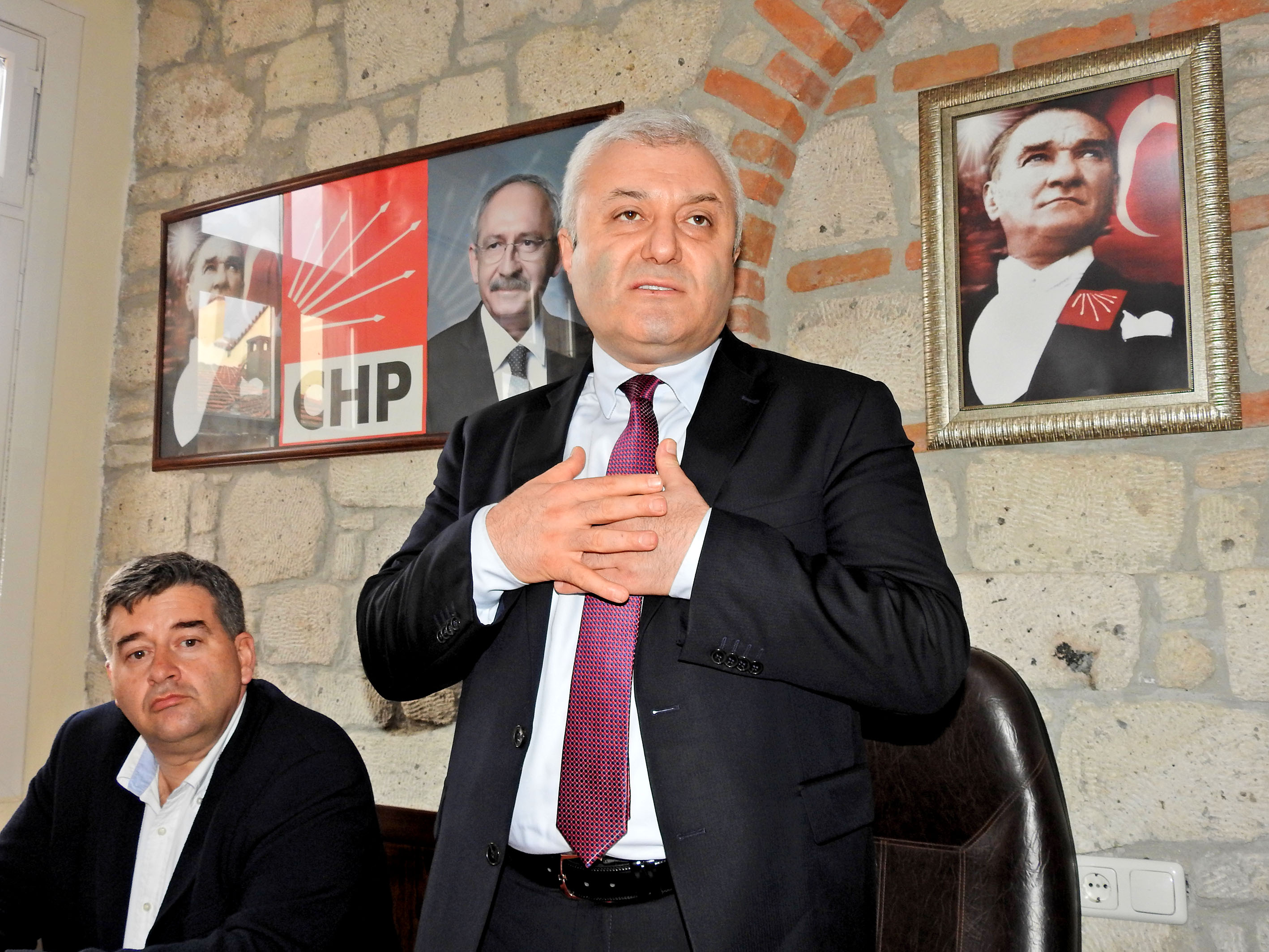 Konukları parti binasında ağırlayan CHP Çeşme İlçe Başkanı Ekrem Oran, CHP Genel Başkan Yardımcısı Tuncay Özkan'ın geçmiş dönemde milyonlarca insanın katıldığı büyük Cumhuriyet mitinglerini gerçekleştirdiğini hatırlatarak, "Hemen arkasından da Ergenekon kumpası ile zindana atıldı. Tuncay Özkan, o Cumhuriyet mitinglerinde, AKP'yi beraber kurdukları, şimdi küstükleri büyük ortakları FETÖ hakkında uyarılarda bulunmuştu. Tuncay Özkan, Ergenekon zindanlarından çıktı, geldi ve İzmirimiz'in milletvekili oldu. CHP'nin son kurultayında da, listeleri delerek Parti Meclisi'ne seçildi ve Genel Başkanımızın takdiri ile Genel Başkan Yardımcımız oldu. Mustafa Kemal'in askeri Tuncay Özkan ile yıllardır beraber yürümekten şeref duyuyorum" diye konuştu.