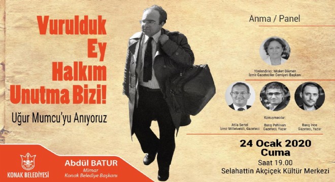 Konak Belediyesi ve İzmir Gazeteciler Cemiyeti, 24 Ocak 1993’te Ankara’da evinin önünde, arabasına konulan bombanın patlaması sonucu suikasta kurban giden gazeteci ve yazar Uğur Mumcu’yu, Selahattin Akçiçek Merkezi’nde düzenlenecek bir etkinlikle anacak.