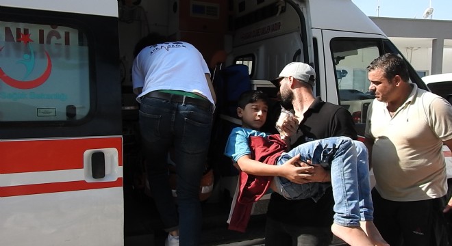 Sahil Güvenlik ekiplerinin Çeşme açıklarında kurtardığı göçmenler arasında bulunan ve 4 gündür aç ve susuz olduğu için bitkin düşen 11 yaşındaki Suriyeli Şiar Muhammed, ambulansla hastaneye kaldırıldı.