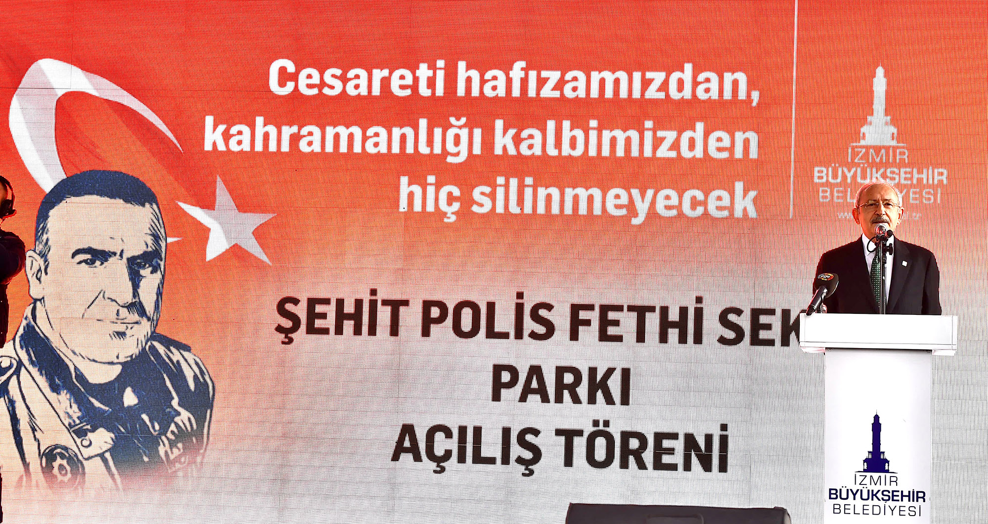 Bizler rahat rahat uyurken görev başında bulunan polislerin ve askerlerin de unutulmaması ve ve haklarının ödenmesi gerektiğini belirten Kılıçdaroğlu, “Bunu İzmir' de söylemenin daha farklı bir anlamı var. Polise, askere sıkılan her kurşun millete sıkılan kurşundur. Polislerimizin, askerlerimizin zor koşularda görev yaptığını biliyorum. Onların haklarını tam ödüyor muyuz? İtiraf edeyim, ödemiyoruz. Onlara şükran borçluyuz” dedi. İzmir Şehit Fethi Sekin Parkı ile kahraman şehidin isminin sonsuza kadar yaşayacağını söyleyen Cumhuriyet Halk Partisi Genel Başkanı Kemal Kılıçdaroğlu, konuşmasını şöyle tamamladı: