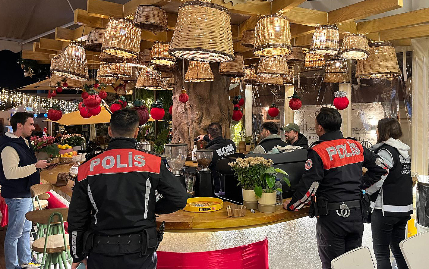 Çeşme İlçe Emniyet Müdürlüğü ve Çeşme KOM Büro Amirliği ekipleri ile birlikte; 2026 Yılbaşı etkinliklerinin huzur içerisinde gerçekleşmesi ve halk sağlığının korunması adına ilçede faliyet gösteren eğlence mekanında yasal evraklar ve satılan alkol ürünleri yönünden denetim yapıldığını açıklayan İlçe Emniyet Müdürlüğü, vatandaşları da uyararak herhangi bir şüphe kapsamında kendilerine 112!den ulaşabileceklerini de sözlerine eklediler.