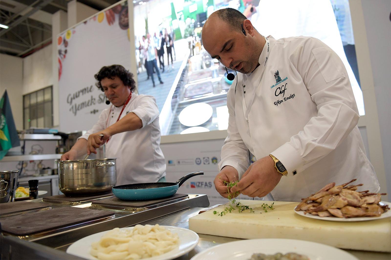 Fuar kapsamında, Türk mutfağının önemli temsilcilerinden Şef Özlem Mekik moderatörlüğünde düzenlenecek mutfak atölyelerinde, alanında uzman şefler Ege ve İzmir mutfağından özel reçetelerini ziyaretçilerle paylaşacak. 1 Mayıs’ta DoubleTree by Hilton’dan Executive Chef İlhami Dinç, Ege otlarını yorumladığı “Çağla bademli ballı Ege otları harmanı”nı hazırlayacak. 2 Mayıs’ta da Mövenpick Otel’den Executive Chef Murat Yıldız “Levrekli şevketi bostan”, Kaya Otel’den Su Şefi Yahya Yıldırım ise “İzmir kumru ekmeği üzerine enginarlı köfte” sunumlarıyla ziyaretçilerle buluşacak. Ziyaretçiler, mutfak atölyeleri ile lezzet dolu bir deneyim yaşayacak.