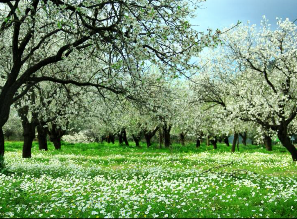 İşte o anda ağacın dalları yaprak yerine beyaz çiçeklerle doldu.