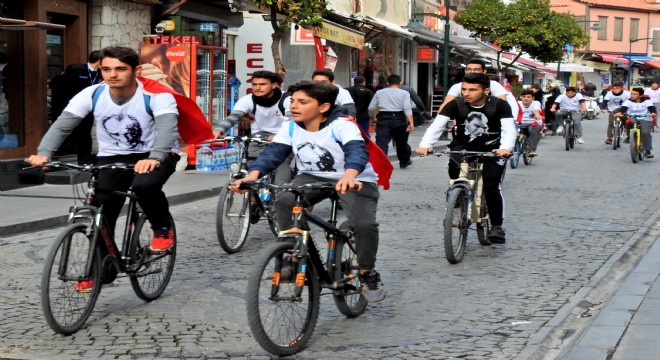 Atatürk Anıtı'nın önünde bisikletleriyle sıralanan öğrencilere, anıta sunmak üzere karanfil dağıtıldı. Atatürk Anıtı önünde öğrencilere seslenen Beden Eğitimi Öğretmeni Yavuz Selim Yılmaz, "Ulu Önder Mustafa Kemal Atatürk'ü, aramızdan ayrılışının 80. yılında, saygı ve minnetle anıyoruz. Atatürk Haftası nedeniyle, pedallarımızı Büyük Önderimiz için çevirdik. Sizleri, Mustafa Kemal Atatürk'ün manevi huzurunda saygı duruşuna ve karanfillerimizi anıtına sunmaya davet ediyorum" dedi.