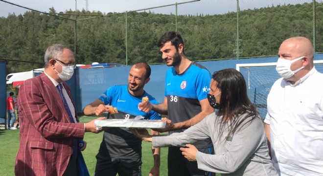 Altay ve Altınordu’yu tesislerinde ziyaret eden Sertel, futbolcular, teknik heyet ve yöneticilerle bir araya gelerek bayram baklavası ikram etti.