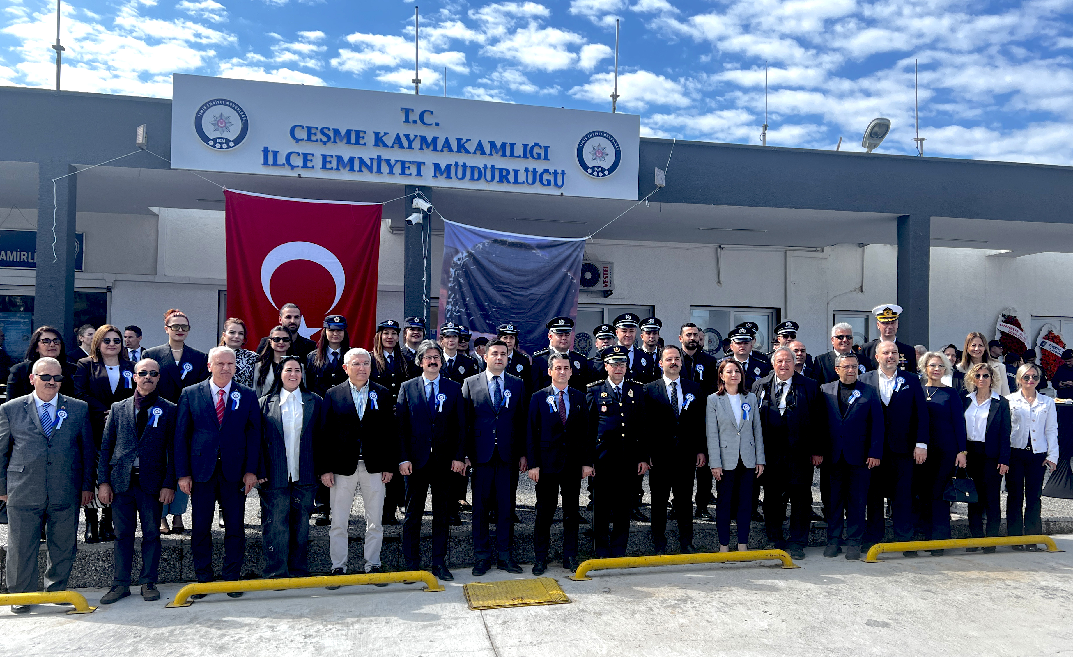 Emniyet Müdürlüğü’nde düzenlenen törene; Çeşme Kaymakamı Mehmet Maraşlı, Çeşme Kaymakam Refiki Adem Levent, Çeşme Belediye Başkan Yardımcısı Banu Ayhan, Çeşme Cumhuriyet Başsavcısı Mustafa Şen, Çeşme Ağır Ceza Mahkemesi Başkanı Emre Erdemir, İzmir Barosu Çeşme İlçe Temsilcisi Av. Nadire Erol, ilçe protokolü, siyasi parti temsilcileri, sivil toplum kuruluşları ile kurum amirleri katıldı.