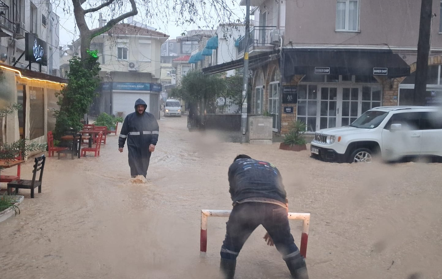 Sağanak yağış sonrası Çeşme'nin kalbi çarşı sular altında kalırken esnafın mağazalarını su bastı. Çeşme'nin diğer mahalleleri de yağmurdan olumsuz şekilde etkilenirken Alaçatı, Reisdere, Çiftlik mahallerinde birçok sokakta su taşmaları yaşandı.