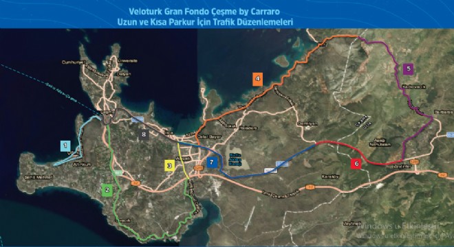 Çeşme yolu Veloturk Gran Fondo bisiklet yarışı için 3 Kasım Pazar günü saat 07:45ile 10:00 arası trafiğe kapalı olacaktır.