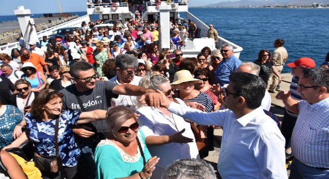 İlk sefer olarak Midilli’den gelen 410 kişilik turist kafilesini limanda karşılayan Başkan Adil Kırgöz, ziyaretçilere hoş geldiniz diyerek hepsine yakın ilgi gösterdi. İki yaka arasında ki dostluğu pekiştirmek adına seferlere çok önem verdiğini söyleyen Dikili Belediye Başkan Kırgöz,”Kent turizmi ve ekonomisini canlandırmak adına komşumuz Midilli ile ilk gemi seferini gerçekleştirdik. Karşı yakadan gelen değerli dostlarımıza hoş geldiniz dedik. Beklediğimiz ve özlediğimiz güzel dostluk köprüsünü bir kez daha kurduk” dedi.” dedi.