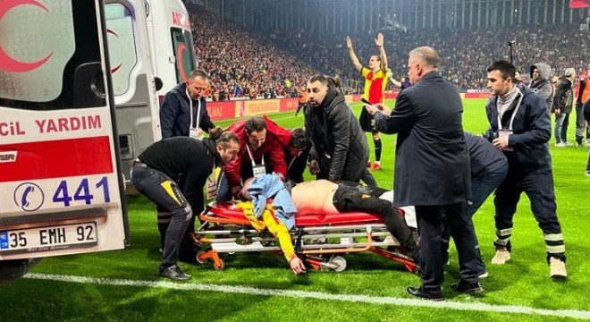 Gürsel Aksel Stadı'ndaki Göztepe-Altay maçında Altay tribünümden atılan işaret fişeği Göztepeli bir taraftarın ağzına geldi. Ağır yaralanan taraftar ambulans ile hastaneye kaldırılırken sahaya giren taraftar bayrak direğiyle Göztepe Kalecisi Ozan Evrim Özenç’e vurdu.