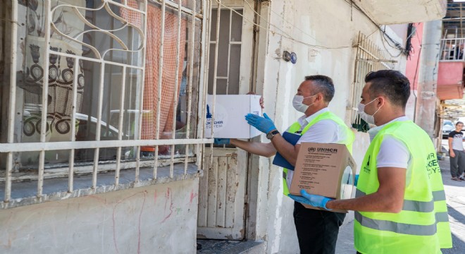 İzmir Büyükşehir Belediyesi, tüm dünyayı tehdit eden koronavirüs salgınıyla mücadele kapsamında mültecilere destek veriyor. Birleşmiş Milletler Mülteciler Yüksek Komiserliği (UNHCR) ve Uluslararası Göç Örgütü’nün (İOM) gönderdiği 2 bin 700 hijyen seti ve 500 gıda paketi dağıtılmaya başlandı.