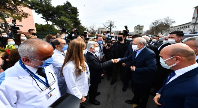 Cumhuriyet Halk Partisi (CHP) Genel Başkanı Kemal Kılıçdaroğlu, İzmir Büyükşehir Belediyesi Eşrefpaşa Hastanesi’ni ziyaret ederek, hastane duvarına yapılan “Korona Kahramanları” temalı mural çalışmasını inceledi.