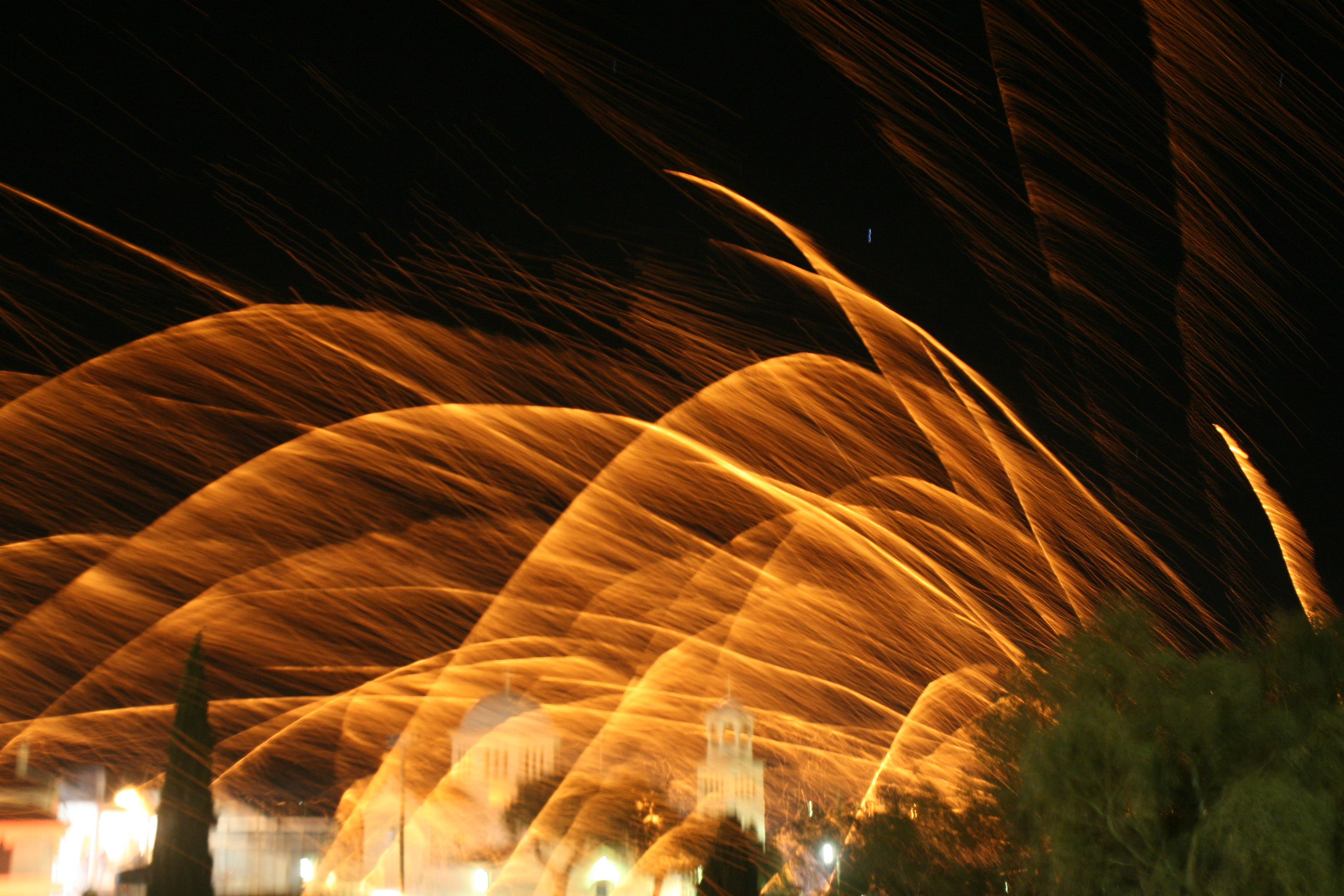 Geçmişi 18. Yüzyıla dayanan bu gelenek, Hristiyanlıkta Hazreti İsa'nın dirilişini kutlamak amacıyla gerçekleştiriliyor. Cumartesini Pazar'a bağlayan gecede Vrontados bölgesindeki iki rakip kilise (Ayios Markos ve Panayia Erithiani) cemaatleri, birbirlerinin kilise çan kulesini hedef alarak el yapımı roketler fırlatarak tam bir görsel şölen yaşatacaklar.