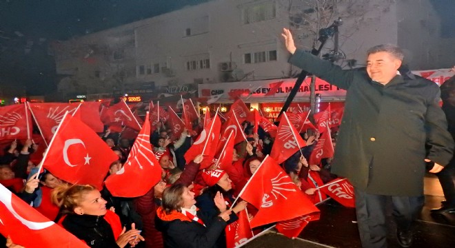 CHP İlçe Başkanı Sait Kavasoğulları ile İYİ Parti İlçe Başkanı Volkan Evci'nin yanı sıra, CHP İlçe Yönetim Kurulu Üyeleri ile Kadın Kolları yöneticilerini de sahneye davet eden Oran, Blue Note Orkestrası'nın çaldığı İzmir Marşı, Dağ Başını Duman Almış ve Onuncu Yıl Marşları'nı, yüzlerce kişilik koroyla birlikte coşkuyla söyleyerek, seçim toplantısını tamamladı.